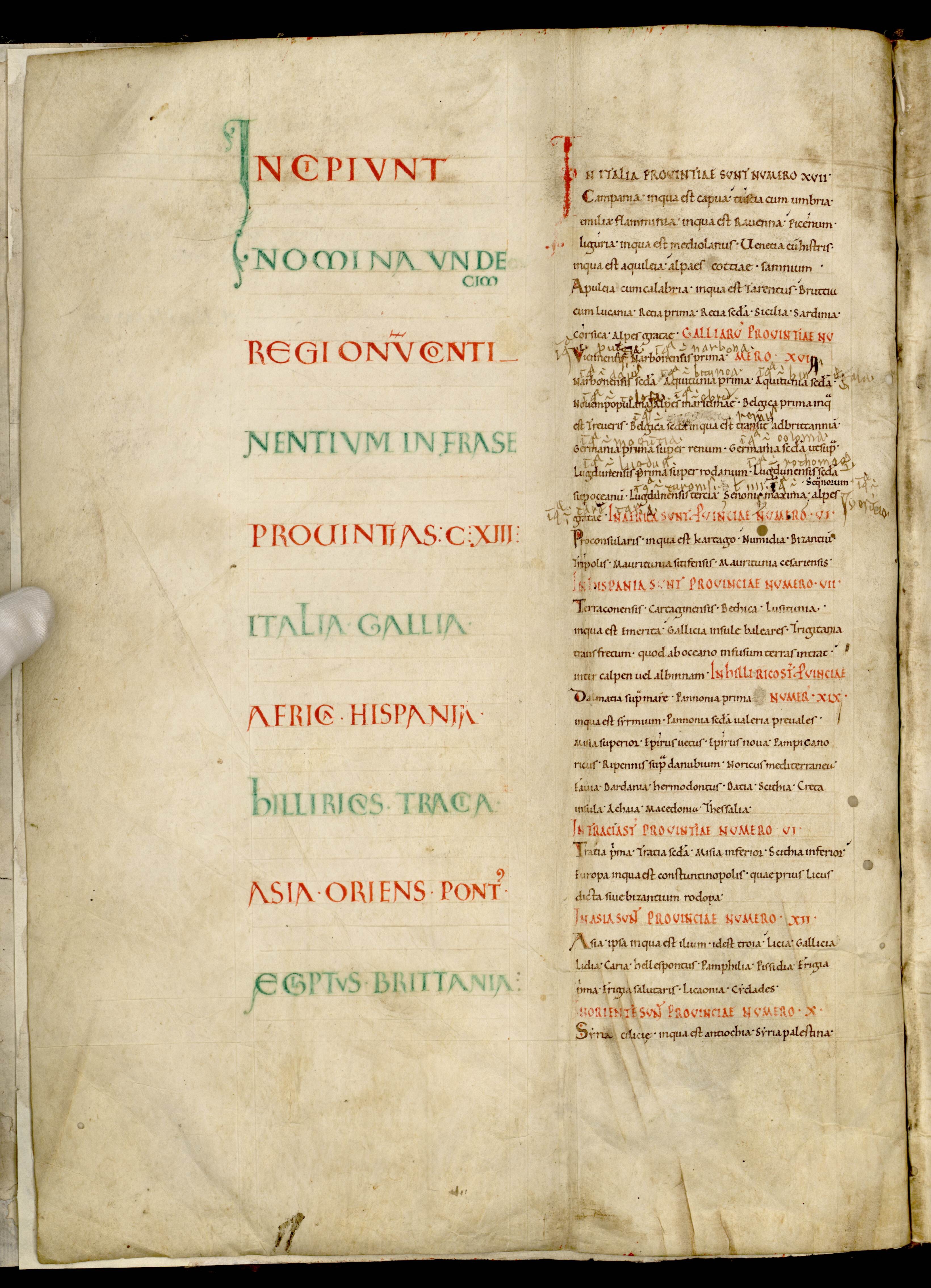 On connait plus d’une centaine de copies de cet ouvrage, ce qui atteste de son importance durant le Moyen Âge. Celle présentée ici comprend des commentaires entre les lignes ajoutés de la main de l’abbé Robert de Torigni (v. 1110-1186). Il y corrige certains noms de provinces.